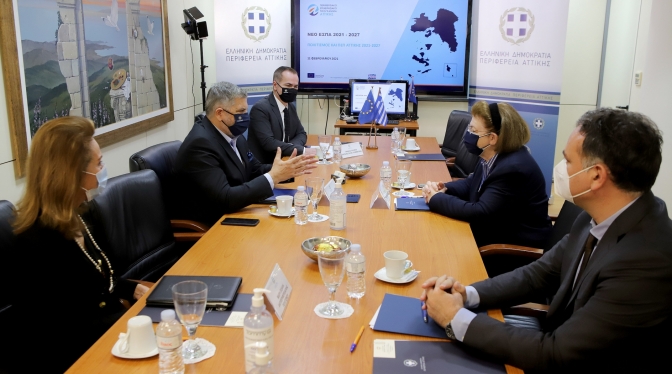 Στην Περιφέρεια Αττικής η Υπουργός Πολιτισμού Λ. Μενδώνη- Συνάντηση εργασίας με τον Περιφερειάρχη Γ. Πατούλη με αντικείμενο το σχεδιασμό δράσεων Πολιτισμού για την επόμενη προγραμματική περίοδο με χρηματοδότηση από νέο το ΠΕΠ Αττικής 2021-2027